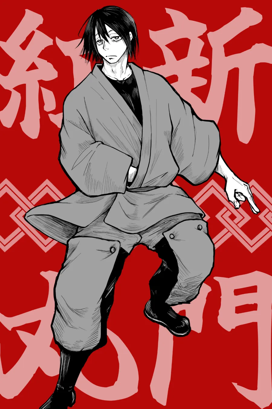 SS シンラクサカベは受け入れられない 7 続きを読む 「子どもなんてのは、その辺で拾ってくればいいだろ。俺もそうだったんだ」 火縄副指令の助言に従い本人に伝えたところ、返ってきたのは、言われてみればないかにも本人らしい答えだった。今までに出自についてくわしく聞かされたことはないが、総指揮が先代の実の子どもでないことは浅草町内では周知の事実だから、俺も前に耳にしたことはあった。もちろん、そのことを気にするような人もこの町にはいない。 「ジジィも紺炉もそうだが、俺ァここの連中の誰とも血はつながっちゃいない。だからと言って縁が浅いとも思わねェよ」 ここ、と言いながら顎で指し示したのは町全体のことだろうけど、俺はとりあえず目の前の見慣れた裏庭に目をやった。そういうことでもないんだけど、と言いたくても、伝わるように話せる自信もなく「はぁ」と曖昧な相槌を返す。 思えば、浅草の詰所に訪れるのは随分と久しぶりだ。それでも、裏庭の土の色を見て匂いを嗅いだだけで、全身のそこかしこに負った傷の痛みとか、アーサーの間抜けな悲鳴とか、良いとは言い難い思い出が一挙に甦ってきた。 「――オイ紺炉! さっきから手ェ抜いてんじゃねェぞ! 病人面はもう通じねェからな!」 と、今まさにその裏庭で俺が連れてきた新入隊員に稽古をつけてくれている紺炉さんに、総指揮が突然怒声を飛ばす。理不尽な罵りに対して、紺炉さんは「なんで俺が怒られにゃならんのですか」と困惑した顔で頭を掻いている。ちょっと俺と話すから、と新門総指揮から紺炉さんに指導が引き継がれて最初は喜んでいた隊員達は、遜色無い、むしろ一層厳しいしごきですでに死体と区別がつかない状態になっている。あぁ、懐かしい。懐かしさしかない。 走馬灯を見て思わず遠い目になる俺と身勝手に活を入れて満足したらしい新門総指揮の間に、しばらく沈黙が流れる。死にかけの隊員の呻き声と鳥のさえずりをBGMに1分ほどたったところで、先に口を開いたのは新門総指揮の方だった。 「それで…………この前は悪かった」 俺は、まず自分の耳を疑った。今謝った?誰が?混乱のあまり、一瞬自分の目の前にいる人がどこの誰なのかが分からなくなった。 「イエ、俺の方こそ、出すぎた真似を……」 駄目だ、驚きで言葉が続かない。冷静に考えれば、俺の方からもっと早く先に謝りに来るべきとこなのに、咎めるどころか自分から謝った? これが本人だけの意思とは思えないけど……と考えていると、つい目が竹刀を振り上げている紺炉さんの方に動く。 「もし他にも聞きたいことがあるなら答えるが」 「え、なんでもですか?」 「ああ。ただし、くだんねェ質問だったらたたっ切るぞ」 つい喜びに顔を綻ばせてしまった俺に、すぐ牽制が入る。じゃあそれって、なんでもいいとは言えなくないか?と疑問が浮かんだけどスルーした。さっきから新門総指揮の目線はずっと縁側の方を向いているから、俺の位置じゃ横顔しか見えないし目も合わない。どこまでが本気でどこまでが冗談か判断がつかなかった。 「そしたら、桜備総隊長の、そのー、どこが好きなんですか?」 「初っ端からくだらねェな。……しいていえば…頑丈なところか」 そりゃ、総隊長以上に頑丈な人は世界広しと言えど中々いないだろう。恋人を好きな理由としては特殊な気がするけど、嘘ではなさそうだ。まだ俺の方がまともな理由を挙げられそうな気がしてしまうけど、しかしまあ、俺相手に言えるのはこんなもんか。 「じゃあ……そもそも、何がきっかけでお付き合いすることになったんですか」 その質問に対して、答えよりも先に、カチャッと鯉口を切る音が響いた。怯えた俺は、思わず全身を震わせ両手を咄嗟に自分の体の前に出した。が、2、3秒の間を置いて再びカチャ、と音がして、指揮官の手元では親指が刀身を納めていた。 「……お前、桜備が泣いてるの見たことあるか?」 「え? いや、多分無い……かな?? そもそも泣いてるイメージが全然ないですね」 突然の質問に首を大きく捻り、慌てて記憶の箱を引っ掻きまわす。そもそも人が泣いてるとこ自体があんま見ないけど、特に桜備総隊長は普段から笑ったり怒ったり感情表現豊かな割に涙のイメージが全然無い。その点、冷静沈着な火縄副指令の方がまだ想像しやすい。ああ見えて、動物が死ぬ映画とか見るといいとこで涙ぐんでたりするし。 「俺も無かった」 「無かった、ってことは、見たってこと……ですか?」 「まぁな」 「えっ、なんの時ですか? なにが理由で?」 「俺が泣かせた」 「げ」 思わず、上官の言葉に対する反応としては不適切な声と表情が漏れ出てしまった。 「泣いてるとこが見てみたくて泣かせて、それを見た時に、この先俺以外に泣かされるようなことがあったらソイツを俺が殺すと決めた」 正直俺には理解しがたい感覚だが、この人が言うと妙に説得力がある。本当に殺しそうだし。 将来的に出るかもしれない被害者を